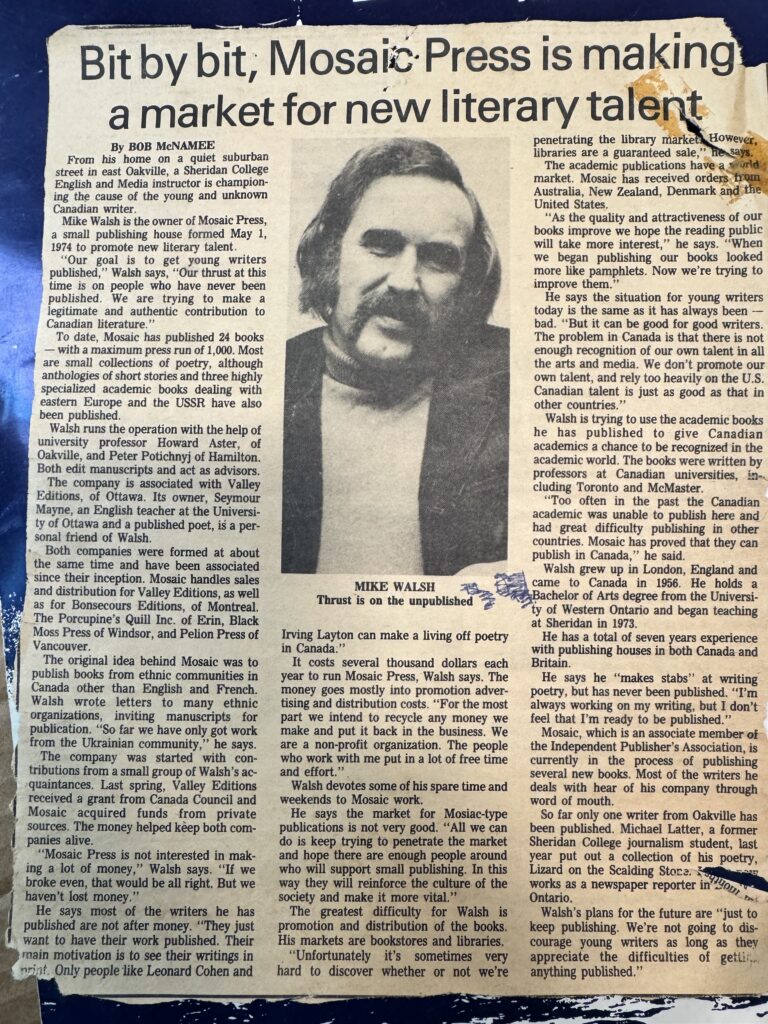 • Celebrating 50 Years at Mosaic Press: Mike Walsh